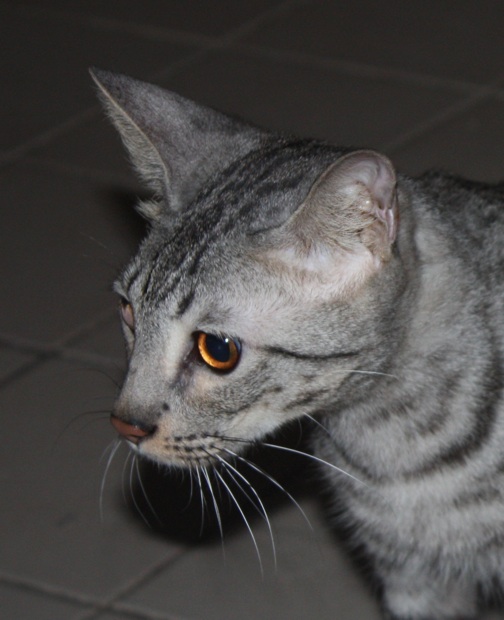 This silver F3B girl is stunning in person. I need to get some better photo's of her. She is a littermate to the boy above, and her eyes are an even darker amber color. She is a very elegant girl. She is available as a pet for $1,800.00 or breeder for $2,250.00 (approved home only).